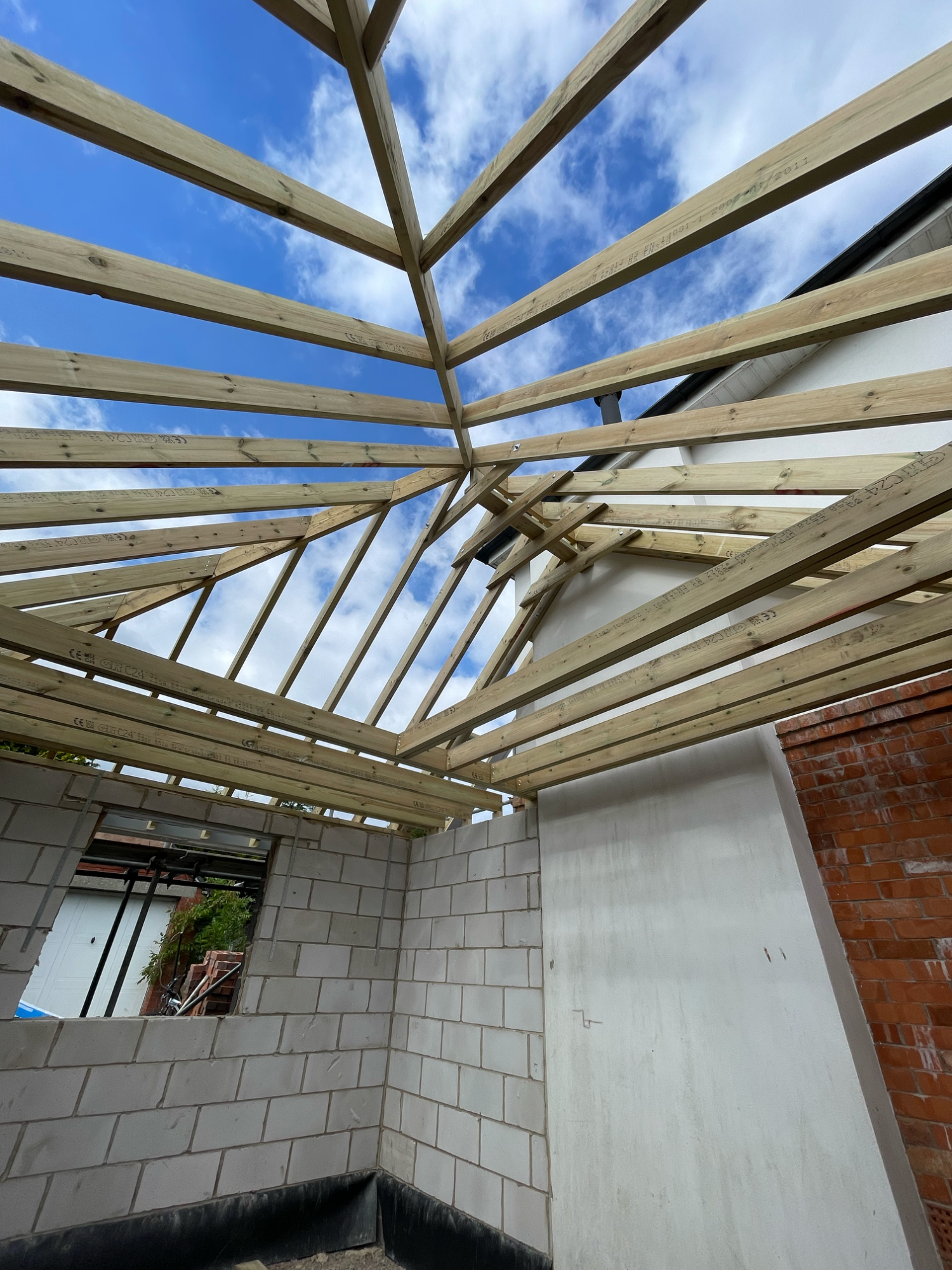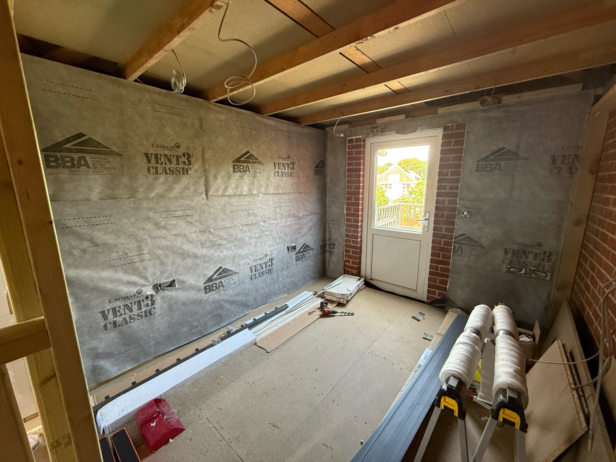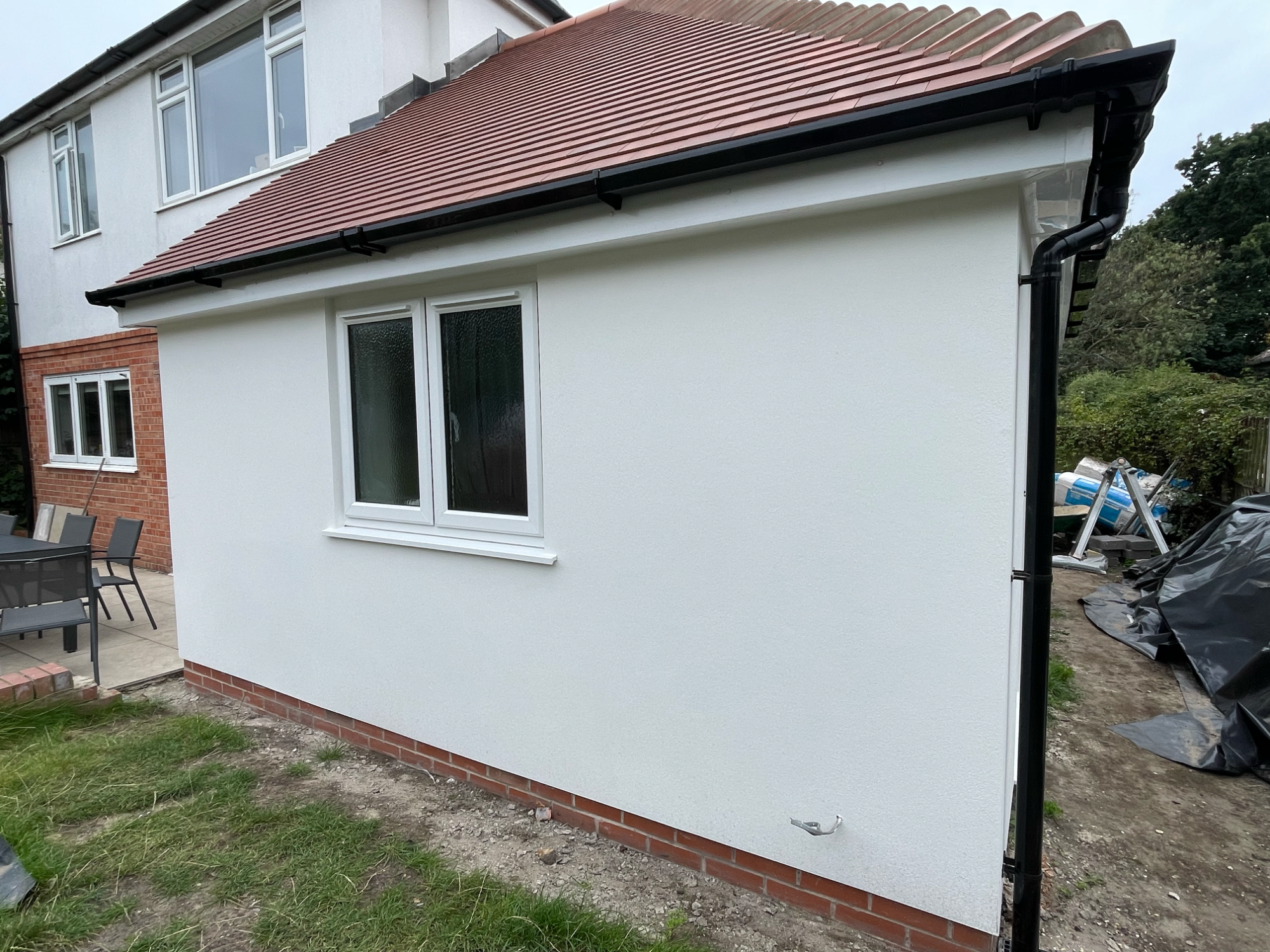 This Garage extension was constructed to provide additional space, with a mezzanine floor added to maximise storage. The interior was fully plastered to create a clean, practical finish, resulting in a functional extension designed for long term use.