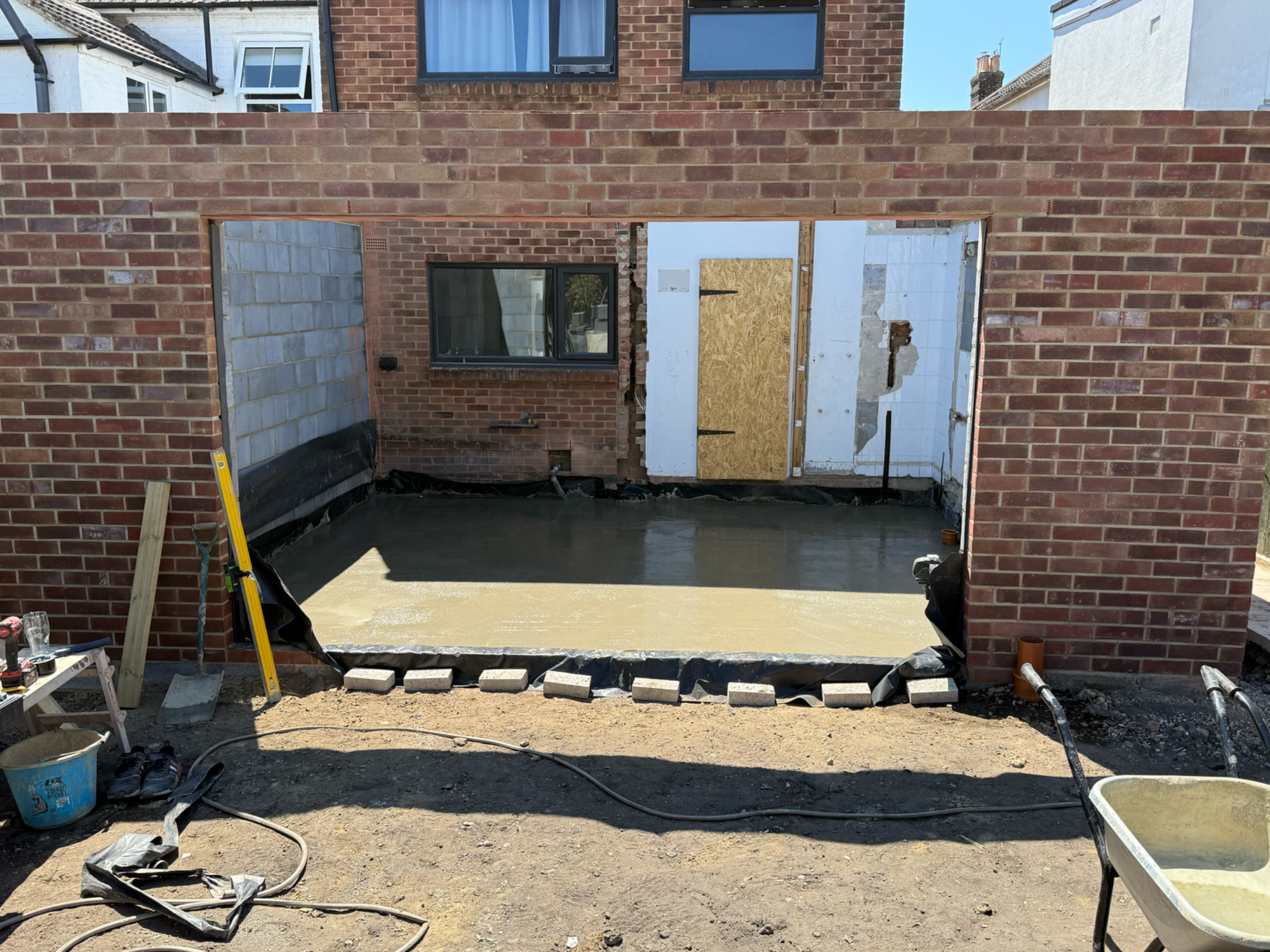 High-quality new build shell completed in Swanage, showcasing precise structural construction and exceptional build standards.