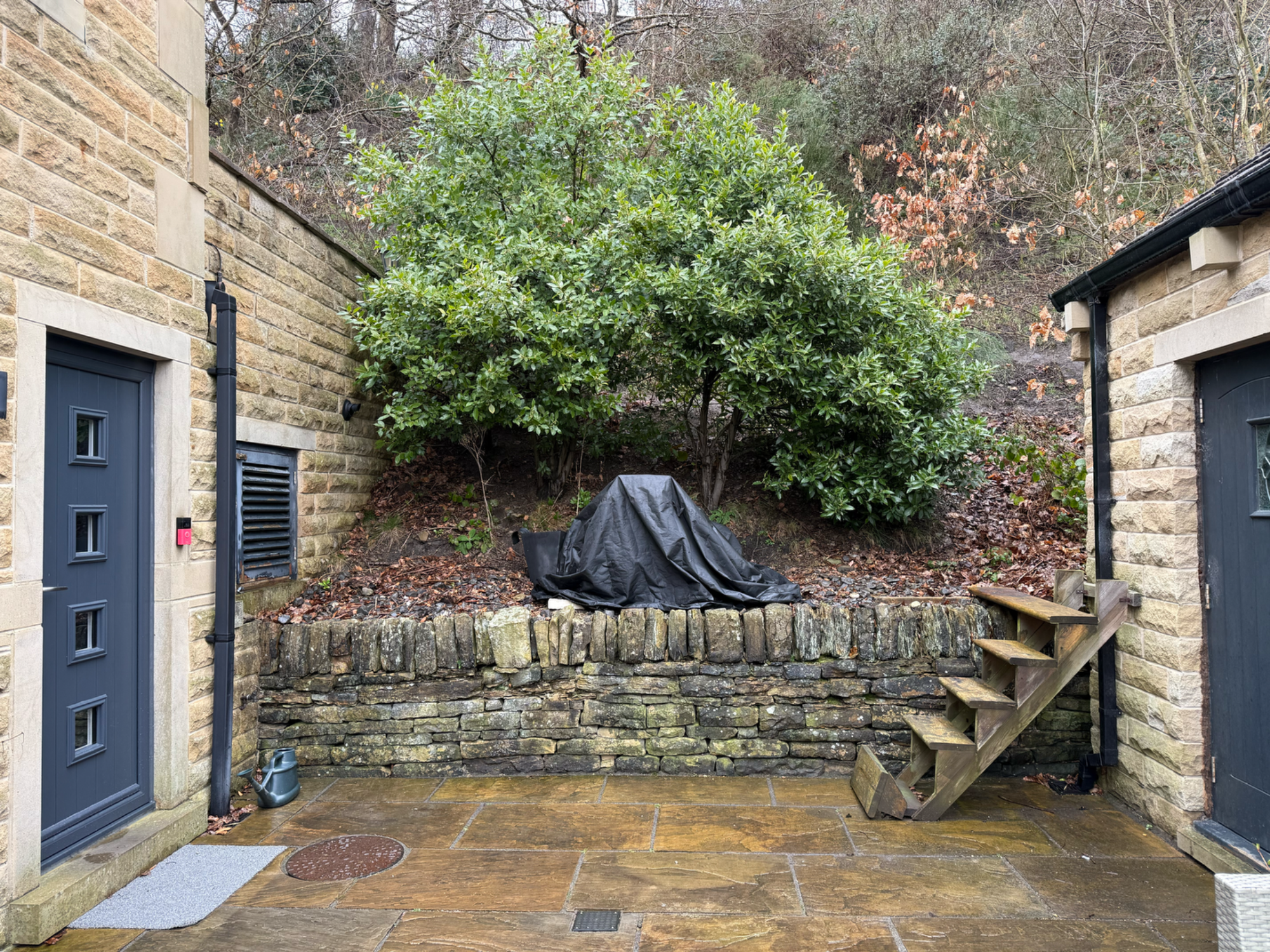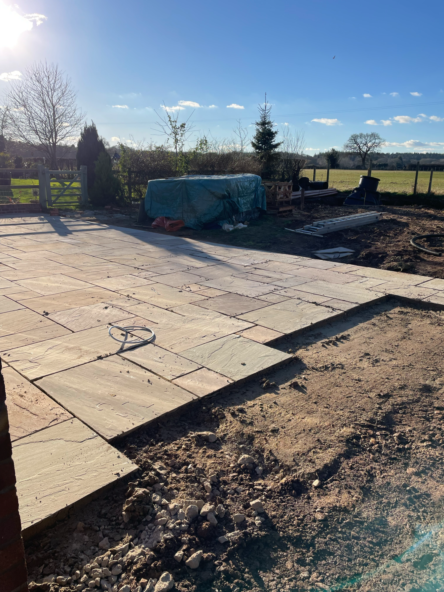 Large Indian sandstone professionally installed to create a clean, durable and stylish outdoor living space.